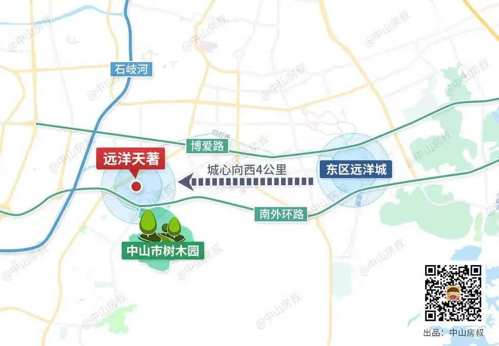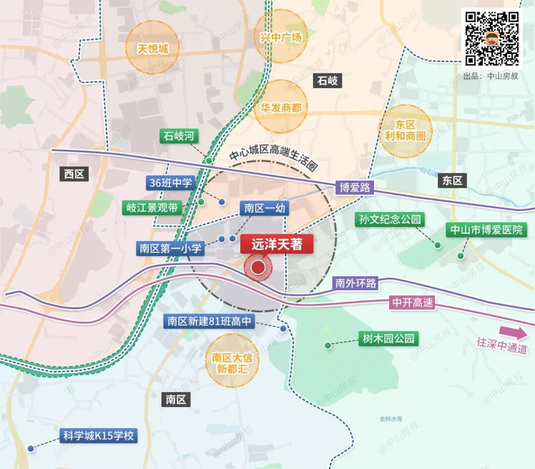 远洋天著所在位置,乃东区、石岐、西区交汇板块。