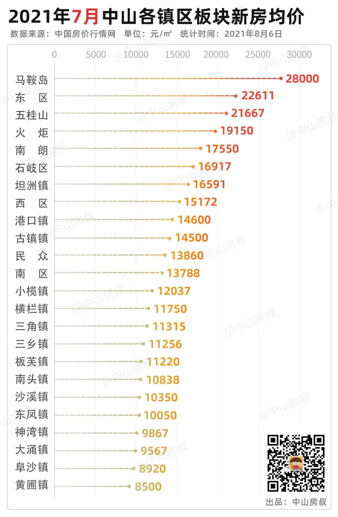 在7月最新板块房价中,从西区之后,皆低于1.5万/平,甚至有4个镇区价格还不到1万/平。