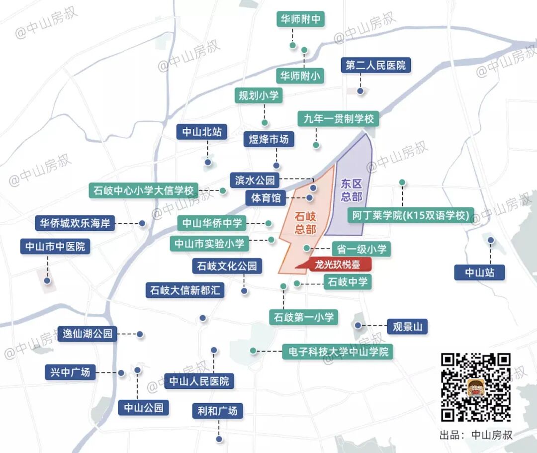 龙光玖悦臺位于石岐经济总部区,周边教育资源丰富,有中山市实验小学、石岐中学、建设中的省一级小学等等。(入读学区以每年政府公布学区划分为准)