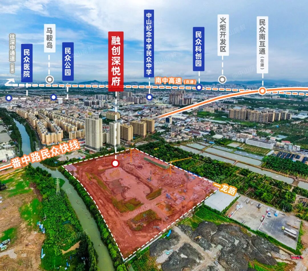 其在深中通道-南中高速出口附近,带来了首进新火炬大作——融创深悦府。