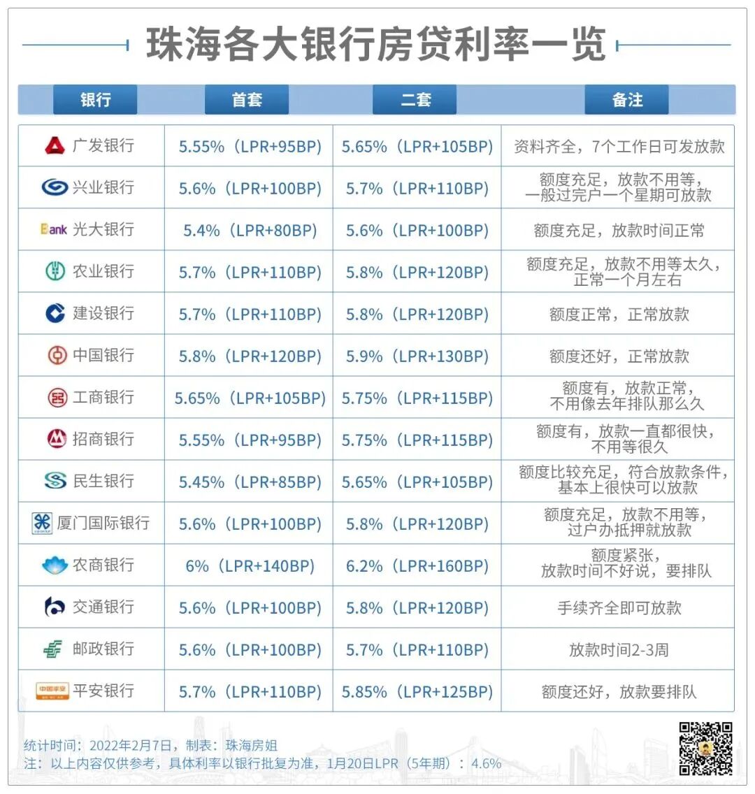 珠海10家银行房贷利率下调,首套最低5.4%,且多家银行放款无需排队;就连中山,最新的房贷利率统计中,也有8家银行下调利率,放款时间缩短至一个星期(详戳)…