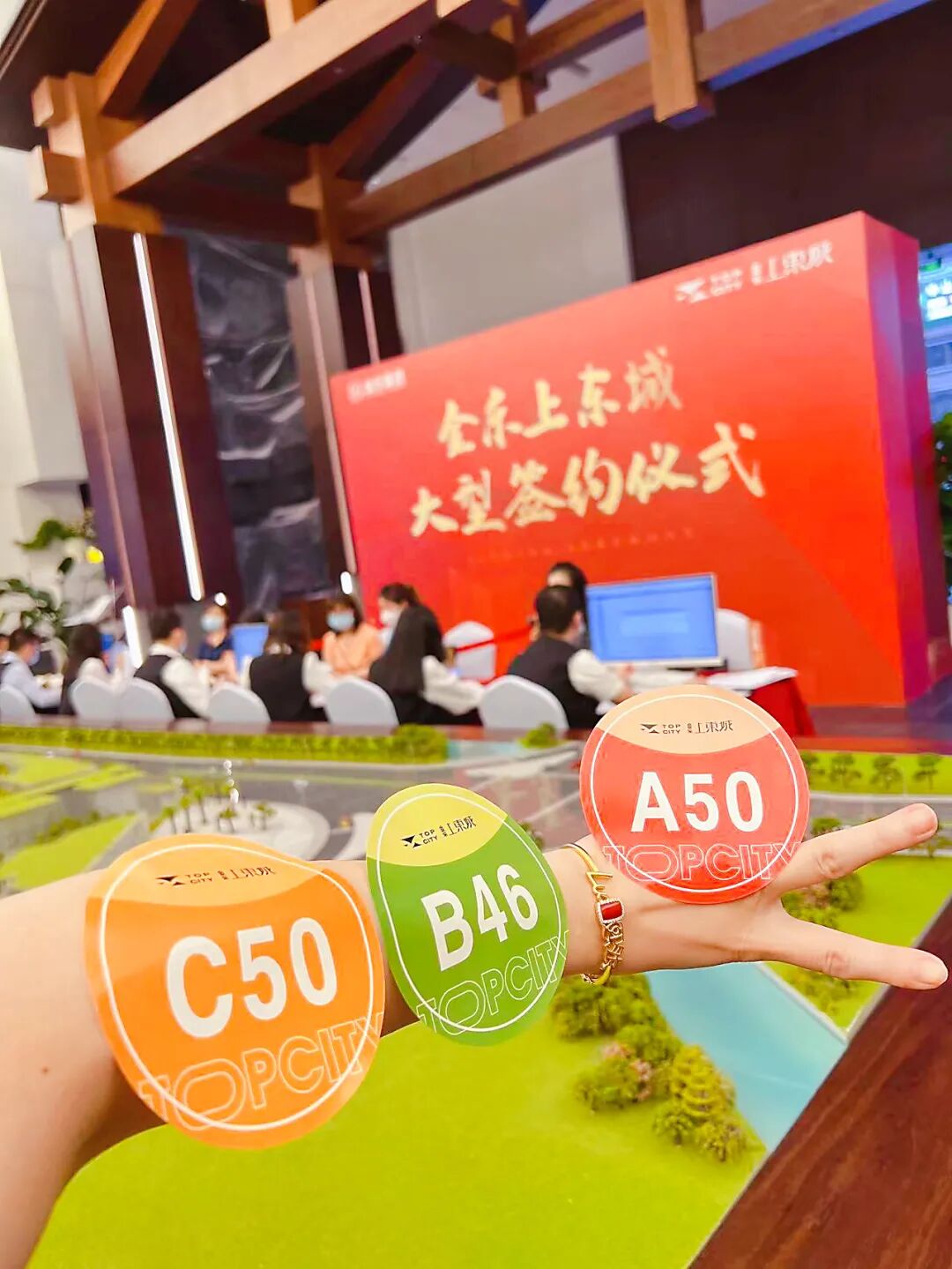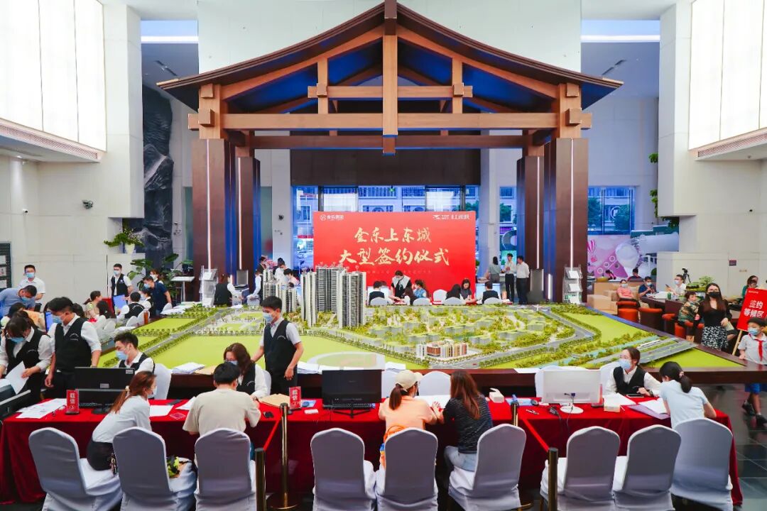 刷屏的楼盘是近期的销冠盘金乐上東城,项目做了一件其他盘没做过的事——把业主们集中起来网签。