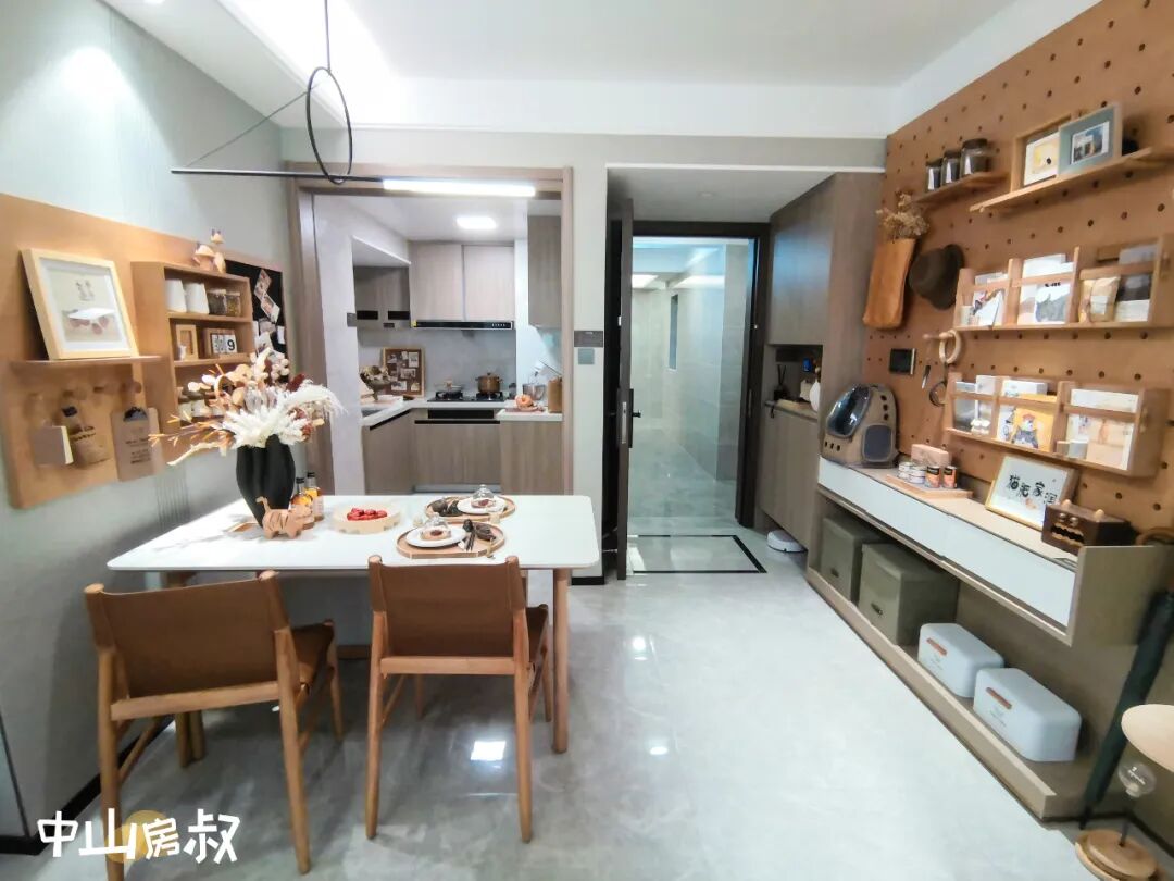 户型可改造性强,如客餐厅+中西厨+家政空间的功能分区,可创造多重生活场景;如果你把分区拆除,就能形成超50平的超级会客厅,尺度感立马上来。