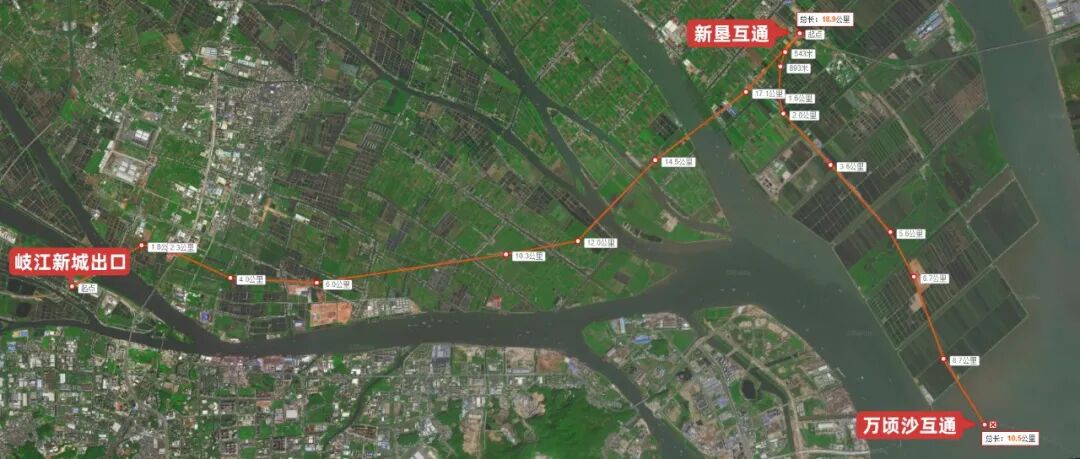 从图中可以看到,南中高速岐江新城出口,对接濠江路往北延伸跨岐江河的濠江北路,通过濠江北路接驳东西走向的含珠路。说了这么多,重点来了——从岐江新城出口通往深中通道的路线有多少条?- 从中山城区出发向东行驶,到达新垦互通后转入万顷沙支线,通过万顷沙互通无缝接驳深中通道。