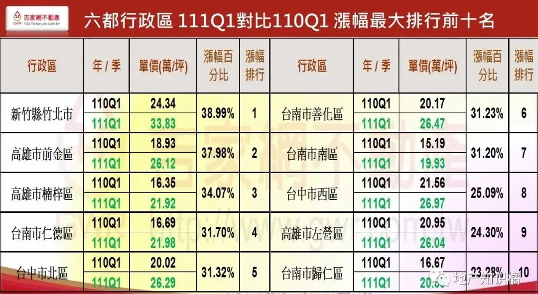 涨幅最高的区域是新竹县的竹北市,