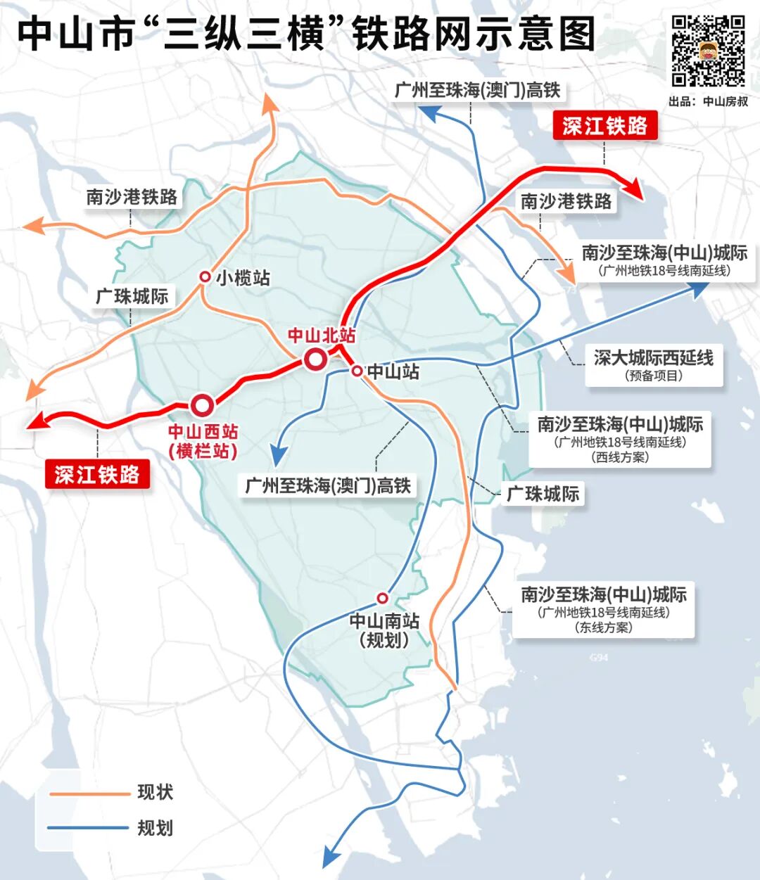其中,深江铁路(中山段)约39.34公里,设中山北站、中山西站(横栏站),另设有广珠城际中山站联络线。