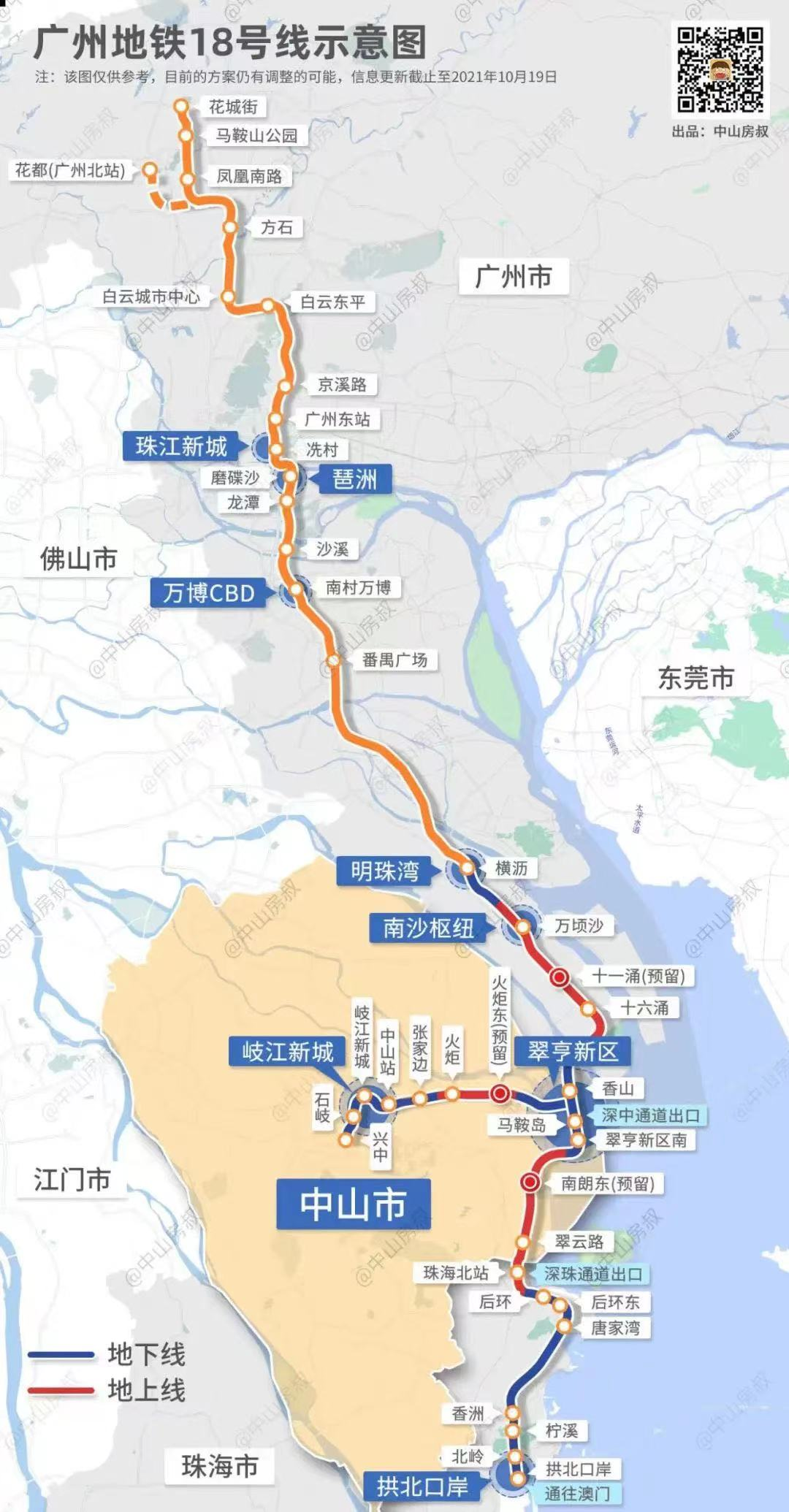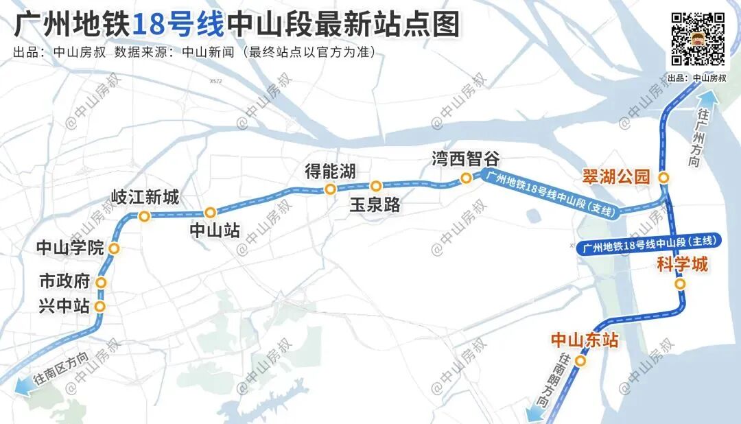至于站点,其实早在5月1日,中山新闻发布的视频——预见岐江新城:“16126” 中山的强“心”密码(3分04秒处),就曝光了广州地铁18号线南延段的新站点图。