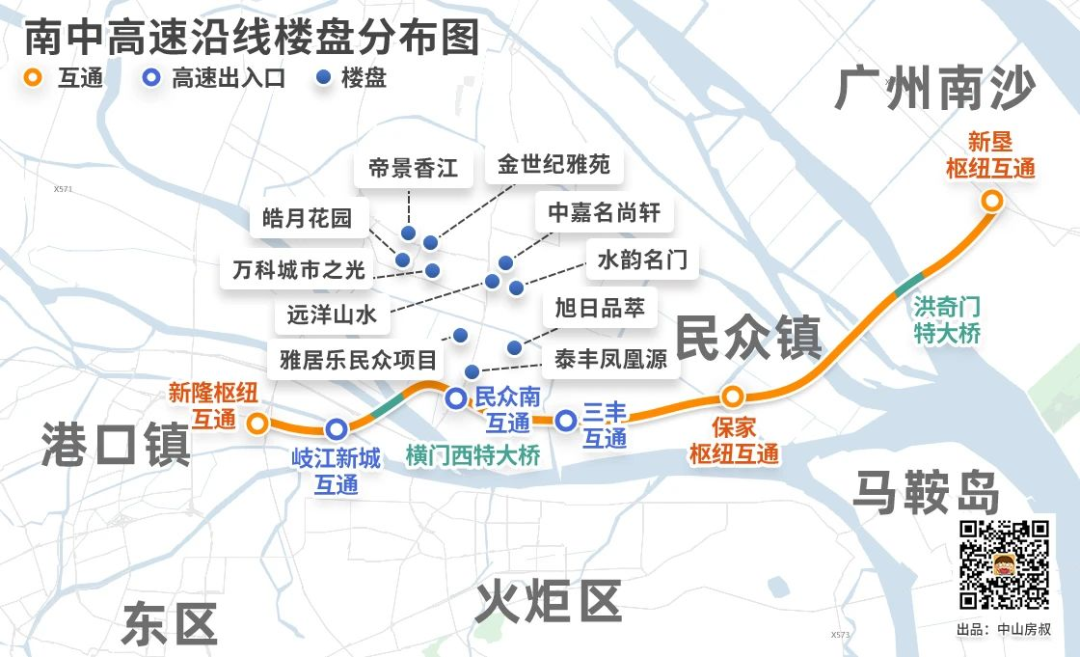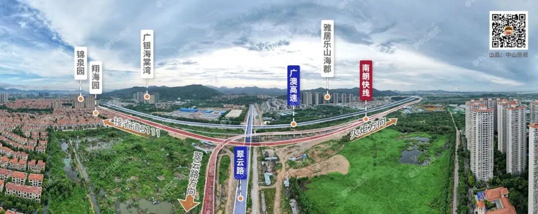 大概就是,从火炬去到南朗仅需8分钟,15分钟就到翠亨新区,20分钟就能到马鞍岛深中通道第一出口。