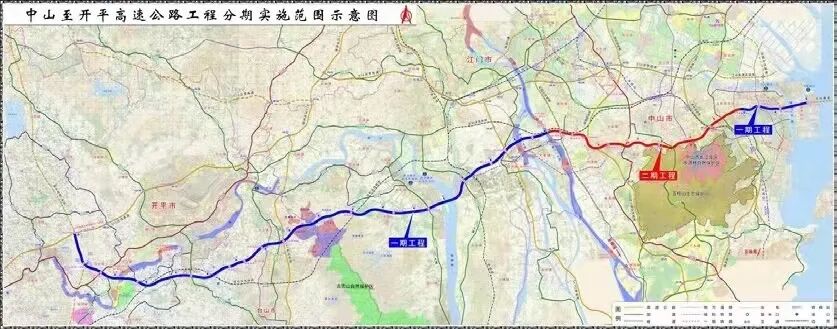 其中,中开高速(中山段)长44.1km,经南朗、火炬开发区、东区、五桂山、南区、沙溪、横栏等多个镇区。中山境内设计为双向6/8车道,设计时速100km/h。总投资约288.85亿元。