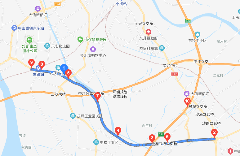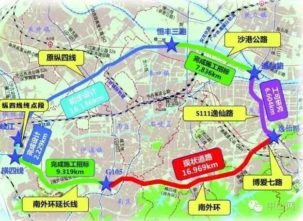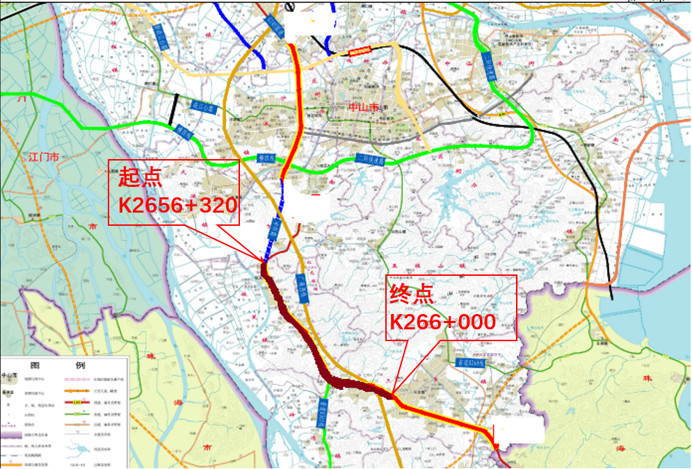 | 国道G105线中山沙朗至古鹤段改建工程线路