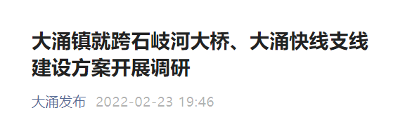 大涌快线,全长9.5公里,总投资约6.7亿元。