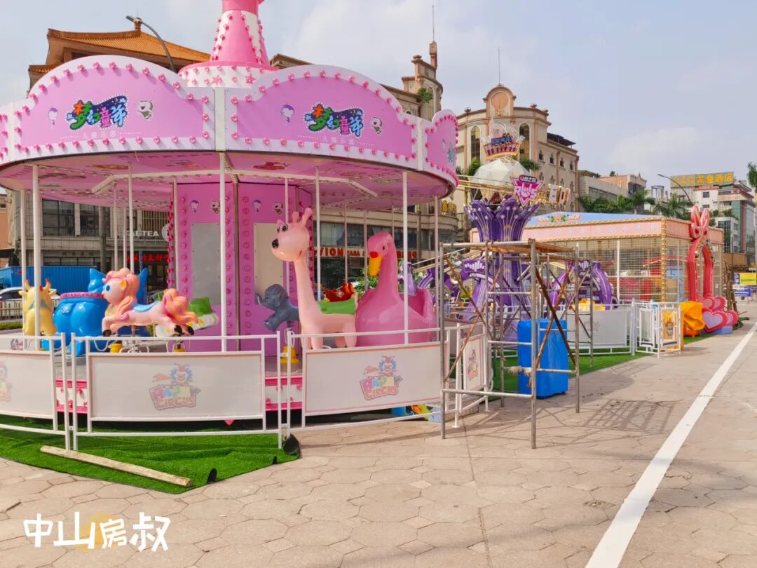 商场外围摆放着儿童游乐设施,不过目前暂未营业。