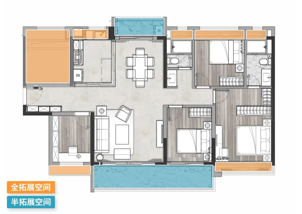 更难得的是,地段身娇肉贵,保利仍然在户型创新上,下足苦工。