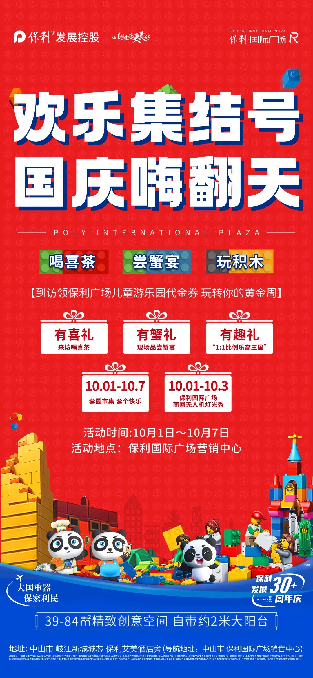 还有港口片区的保利国际广场,将举办积木乐高嘉年华,大小朋友尽情参与积木DIY等系列活动,现场还有大闸蟹套餐、喜茶大派送,是来访即享哦。