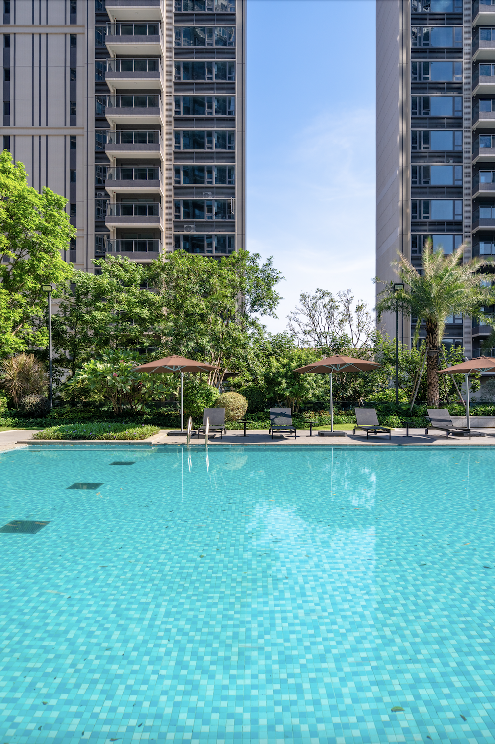 同时,在园林中,项目通过曲线型的路径和绿化树,串联出了儿童乐园、阳光大草坪、景观泳池、多功能运动场等多重活力聚场。由此,孩童表演、年轻人飞盘联赛、露营……各种兴趣活动应运而生,让大家找到组织,舒展活力。