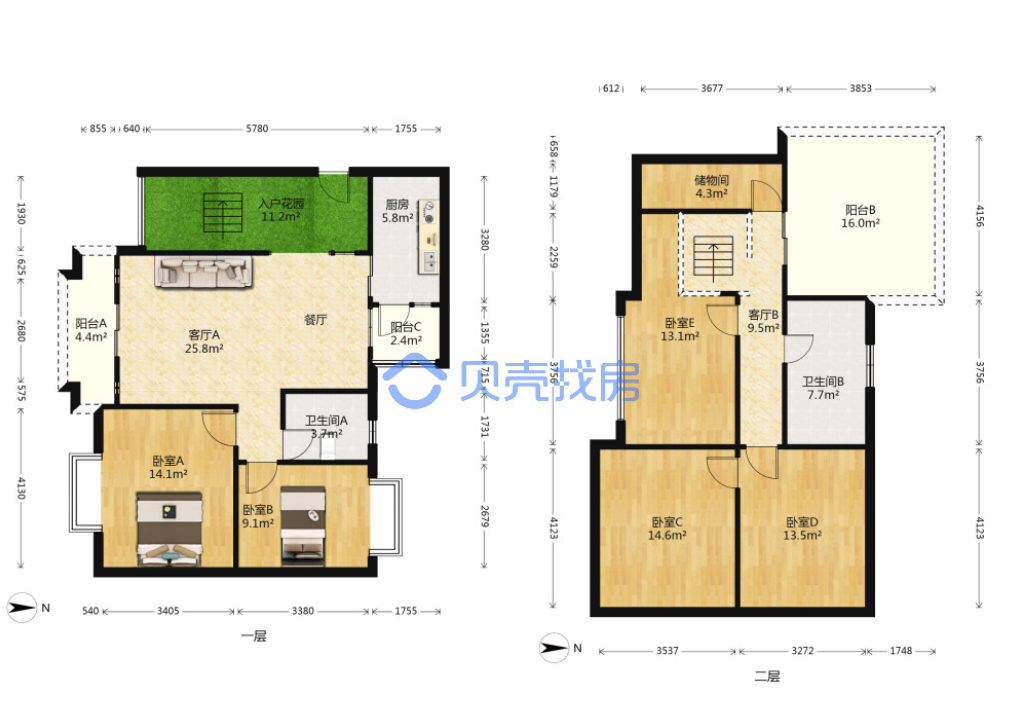 但二层除了约4.3㎡储物间之外,还有东向的两间次卧也都是暗房。