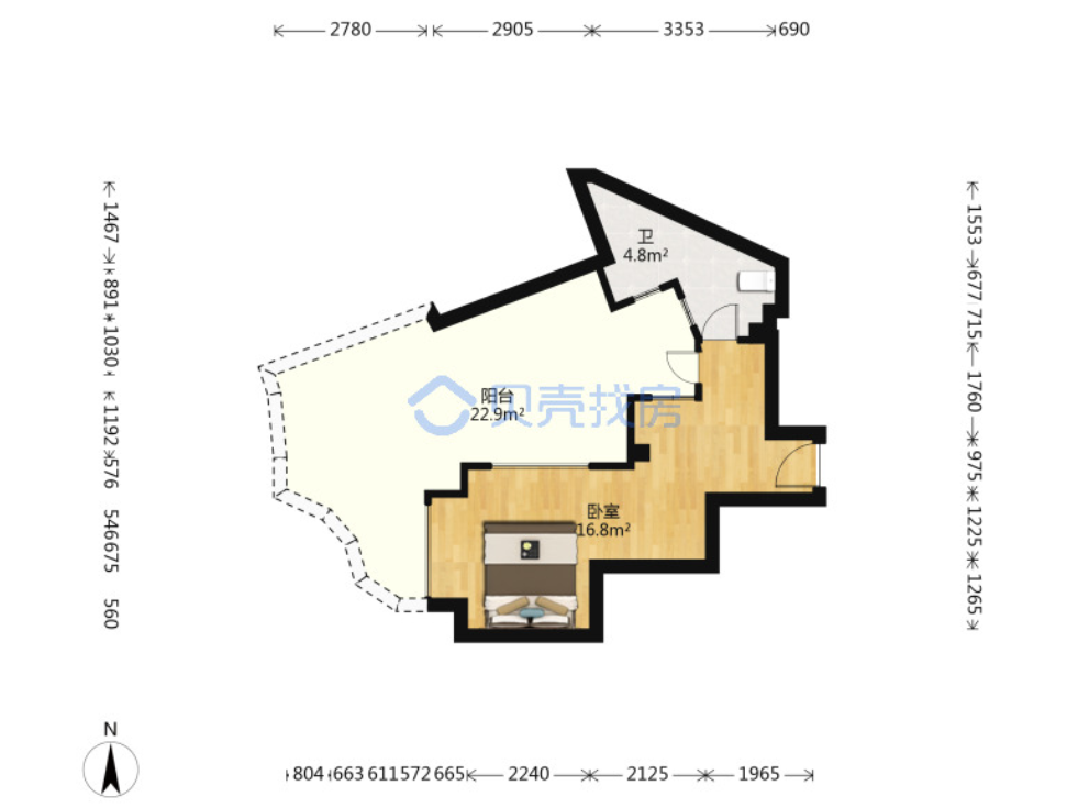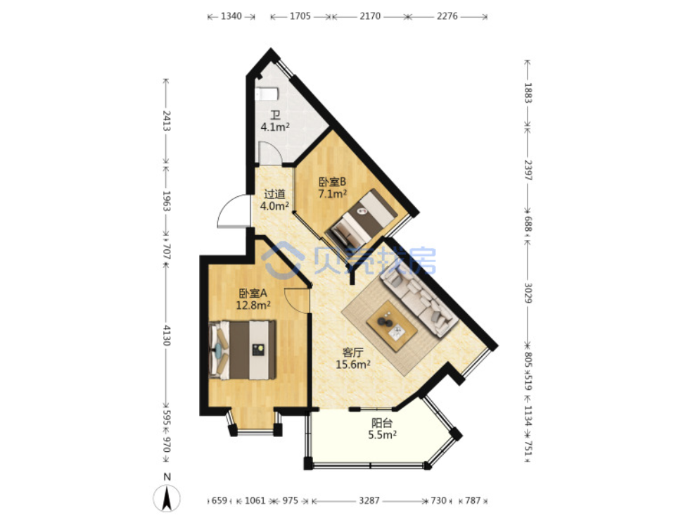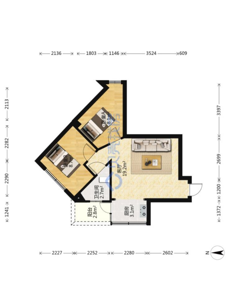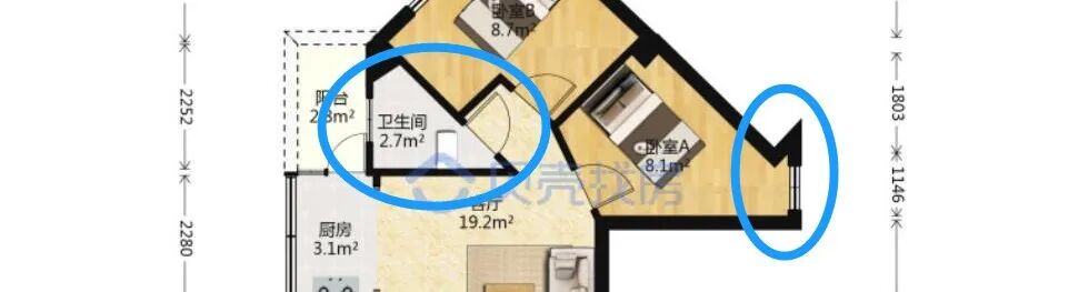 那个形似鸡头的卧室A,以及三角形的卫生间,一定程度上会影响家具摆设。