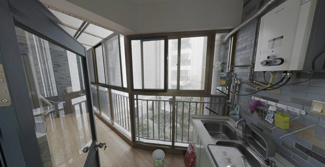 不过,这个厨房旁的套娃阳台有点意思,人家是“山外有山”,它却是阳台外面还是阳台。