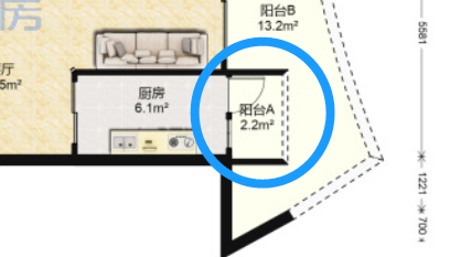 刚好,同一个小区内挂牌的房源就看到这种阳台。但说真的,我觉得还不错的样子,既可以是厨房操作台的延伸,又可以是运动拓展区。