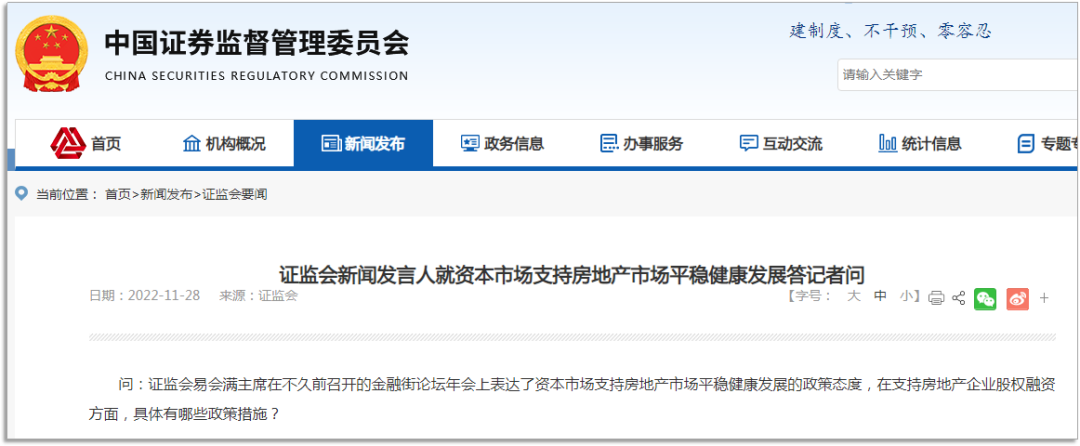 在股权方面,近日,证监会发布支持房地产企业涉及的5个方面!