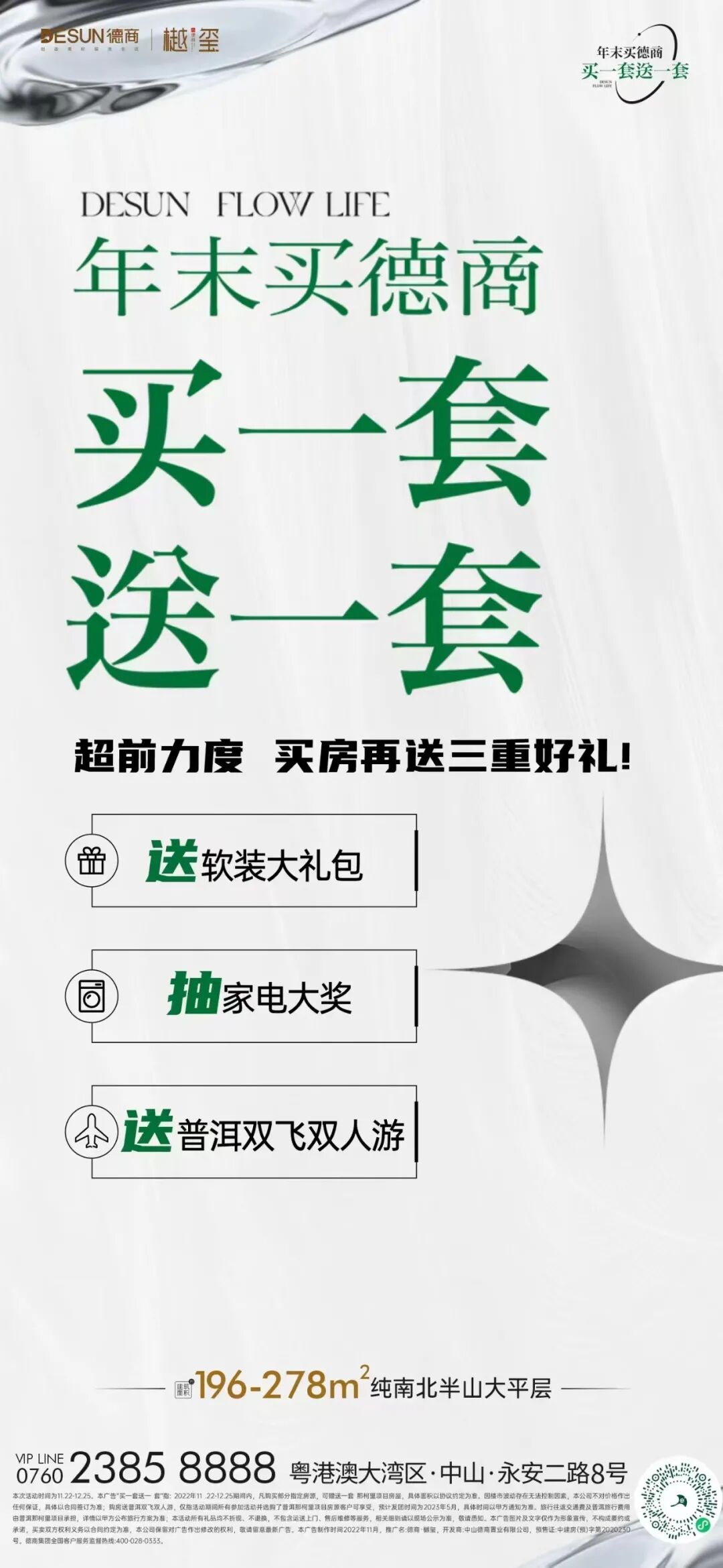 还有南区豪宅德商樾玺,宣传海报上直接打出“买一套送一套”的吸睛字眼,据说现在毛坯大平层还有大幅度的让利。