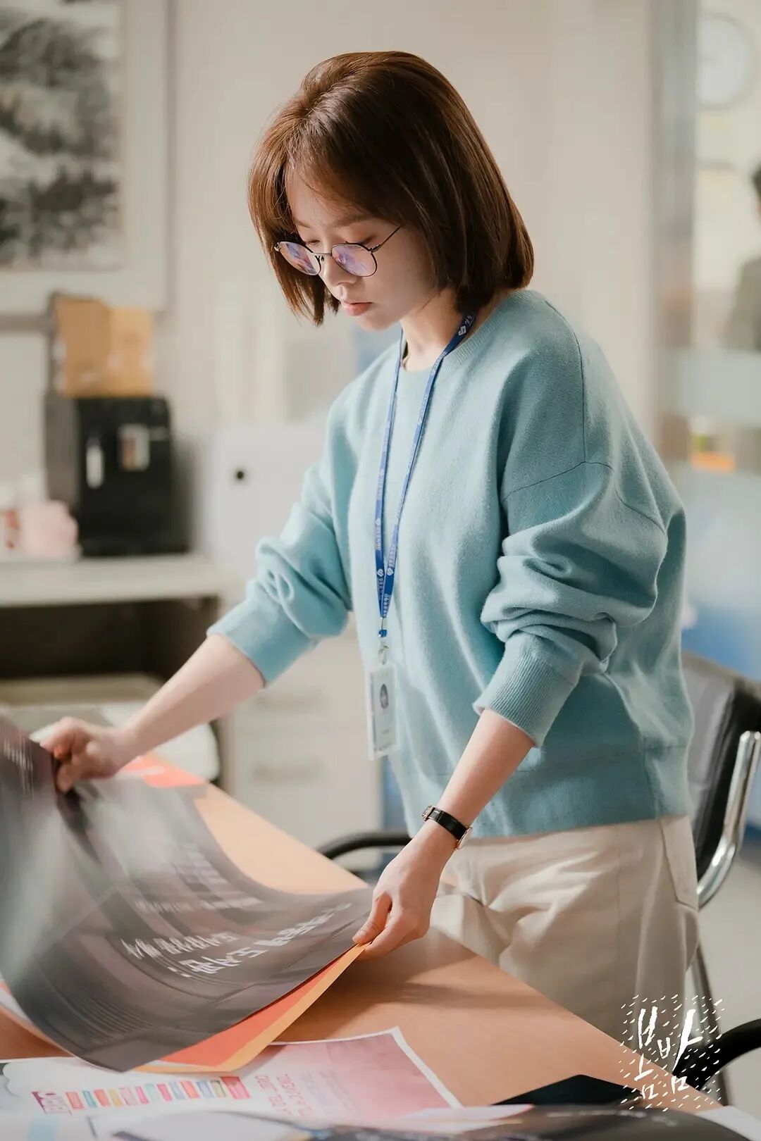 这里的情节是李静仁当着刘智浩的面,和男友电话提分手。看似乖巧的穿搭,却露出叛逆的表现。