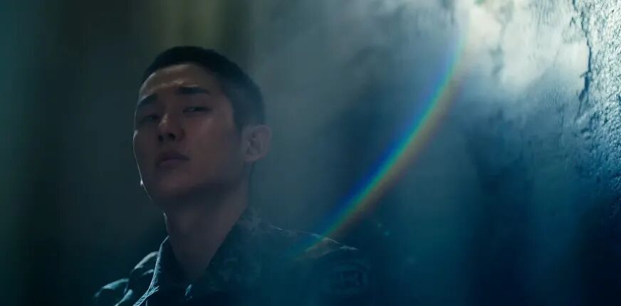 不过一等兵曹石峰给了他安慰,俊浩开始反思、想要改变、做些什么······因此画面中出现了彩虹的光芒。
