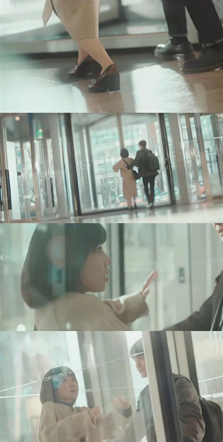 把过旋转门形容成跳华尔兹,导演擅用特写镜头、倾斜镜头以及柔焦,配合轻快的背景音乐,来渲染这一特别的浪漫场面,原本再平凡不过的旋转门变成了梦幻的圆舞曲!