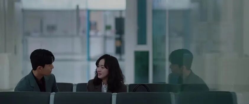 然后他靠近仁珠,墙上的影子自然也靠近了,两个镜头,人物之间的距离发生了变化。崔道日正逐渐赢取仁珠的信任。