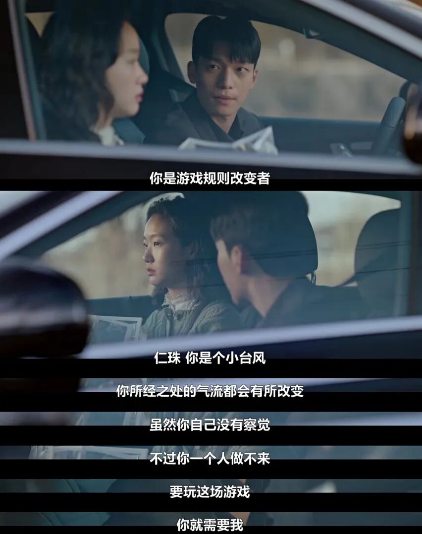 仁珠是不自知的小台风,仁京是在台风中屹立不倒的人。用“台风”隐喻,在这场700亿的阴谋中她们两个的作用和态度。这是个很妙的隐喻。