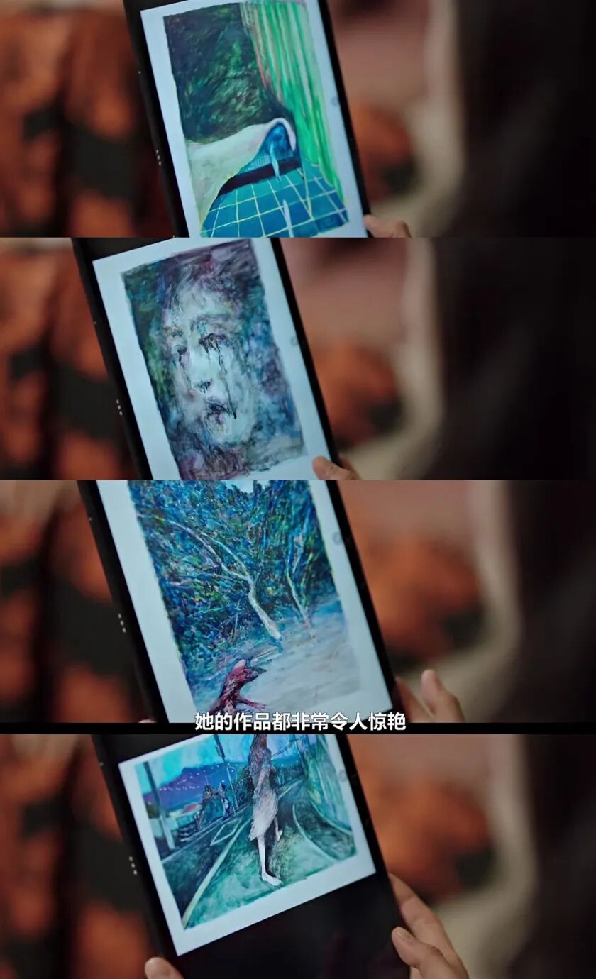 从台词中已知,第3张树林里垂死的姐姐是仁珠;而第2张流着泪的应该是仁京,因为她共情能力过强,播报新闻时常常流泪;第4张光着脚逃跑的女孩是仁惠自己,在她的意识中出现了强烈的“逃离”。