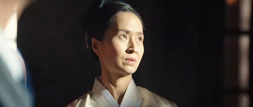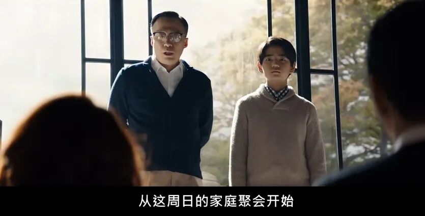当导俊一步一步走下楼梯,镜头摇过每一个人的表情,可以大致分为3类:陈家女儿、两个儿媳、长孙的眼神都是明显的敌意目光;女婿、两个儿子、孙女的表情都没有太大波动,应该是在心中默默打算盘的类型;只有奶奶的表情温和且带有笑容,看似是欢迎,但和上面那张截图不同,奶奶的表情经历了一个明显的波动变化。