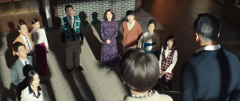 家的布局值得注意一下,美术设计明显有用心——因为楼梯处是有光线的,阳光会从二楼玻璃往下照射,子女们围一圈站在楼梯下,接受阳光的洗礼(?),正如他们都希望获得陈养喆的青睐。