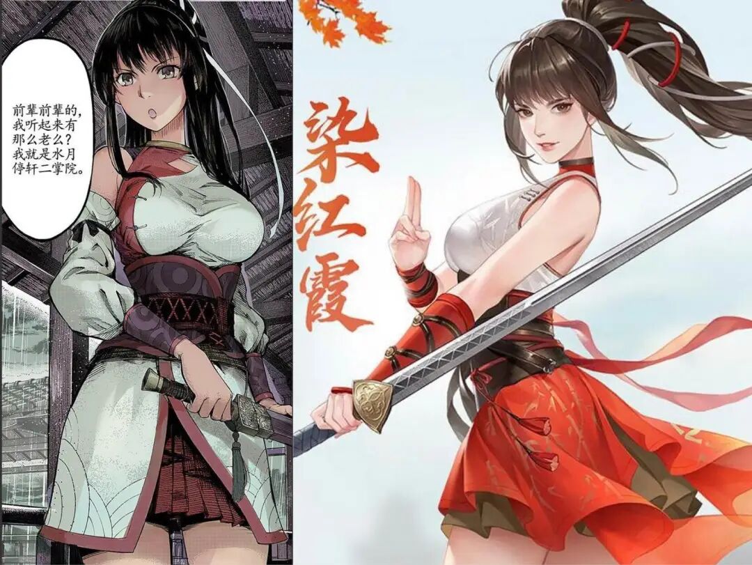角色「染红霞」,左图为漫画,右图为游戏