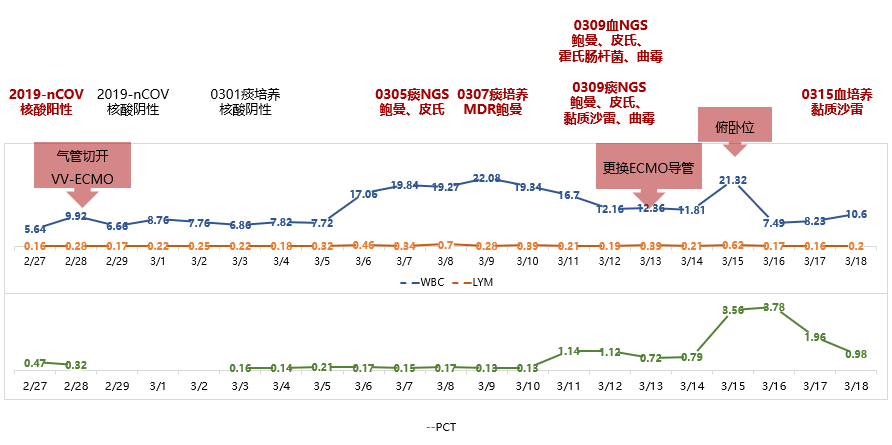 从该例患者的诊治过程我们学习到对于危重型COVID-19患者的诊治,应同等关注原发病治疗(包括抗病毒与免疫调节)以及器官功能支持,防治院内获得性感染是决定治疗成败的关键环节。