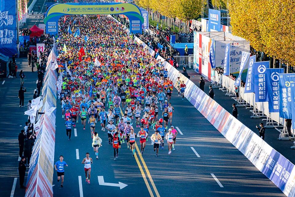 中国万达·2021黄河口东营马拉松准时鸣枪开跑!