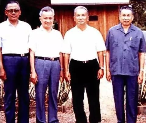 ▲波尔布特(右)和三名红色高棉领领导人,左二是乔森潘