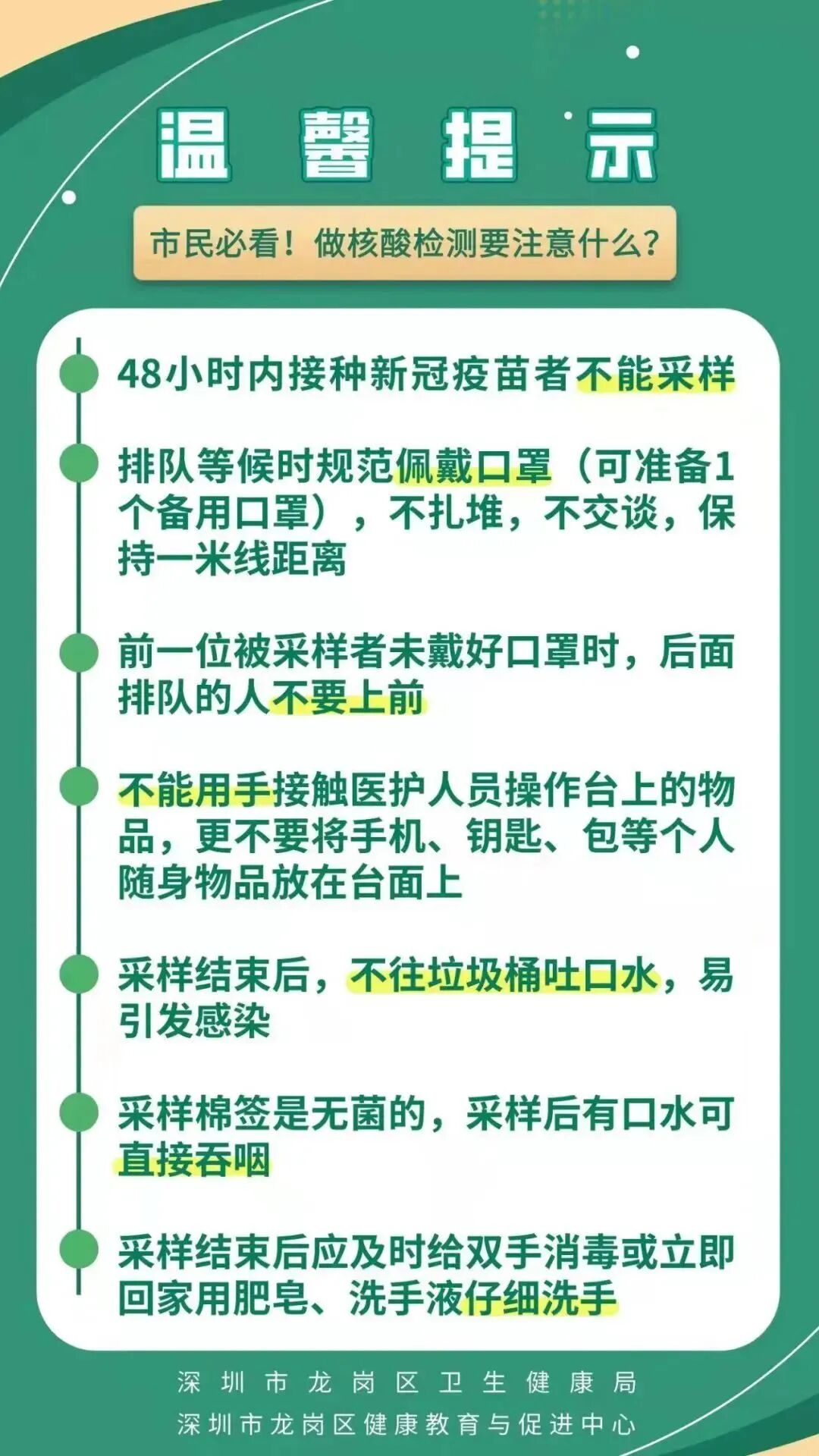 近日,我市核酸检测异常人员曾先后到访过龙岗区、福田区、罗湖区多个场所。为迅速控制疫情,阻断疫情传播扩散,尽可能减少对居民朋友健康和生活的影响,请在以下时间点到访过相关场所的居民进行申报: