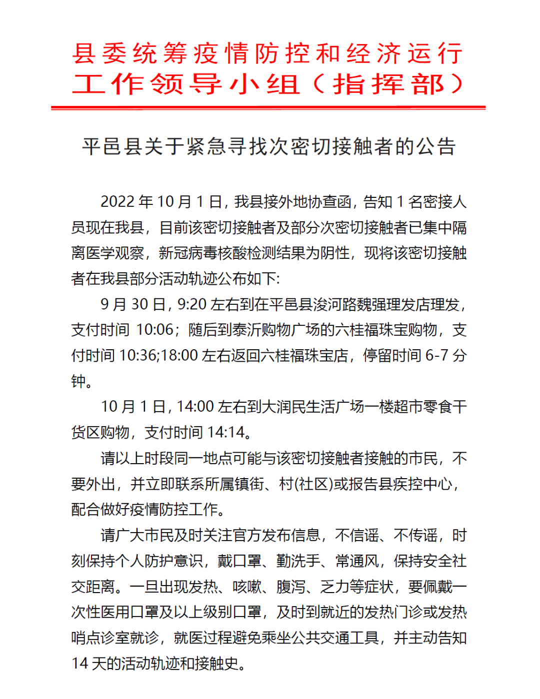 请以上时段同一地点可能与密切接触者接触的市民,做好个人防护,立即联系所属乡镇(街道)、社区(村居)、县疾控中心或县疫情指挥部办公室报告,配合做好疫情防控工作。