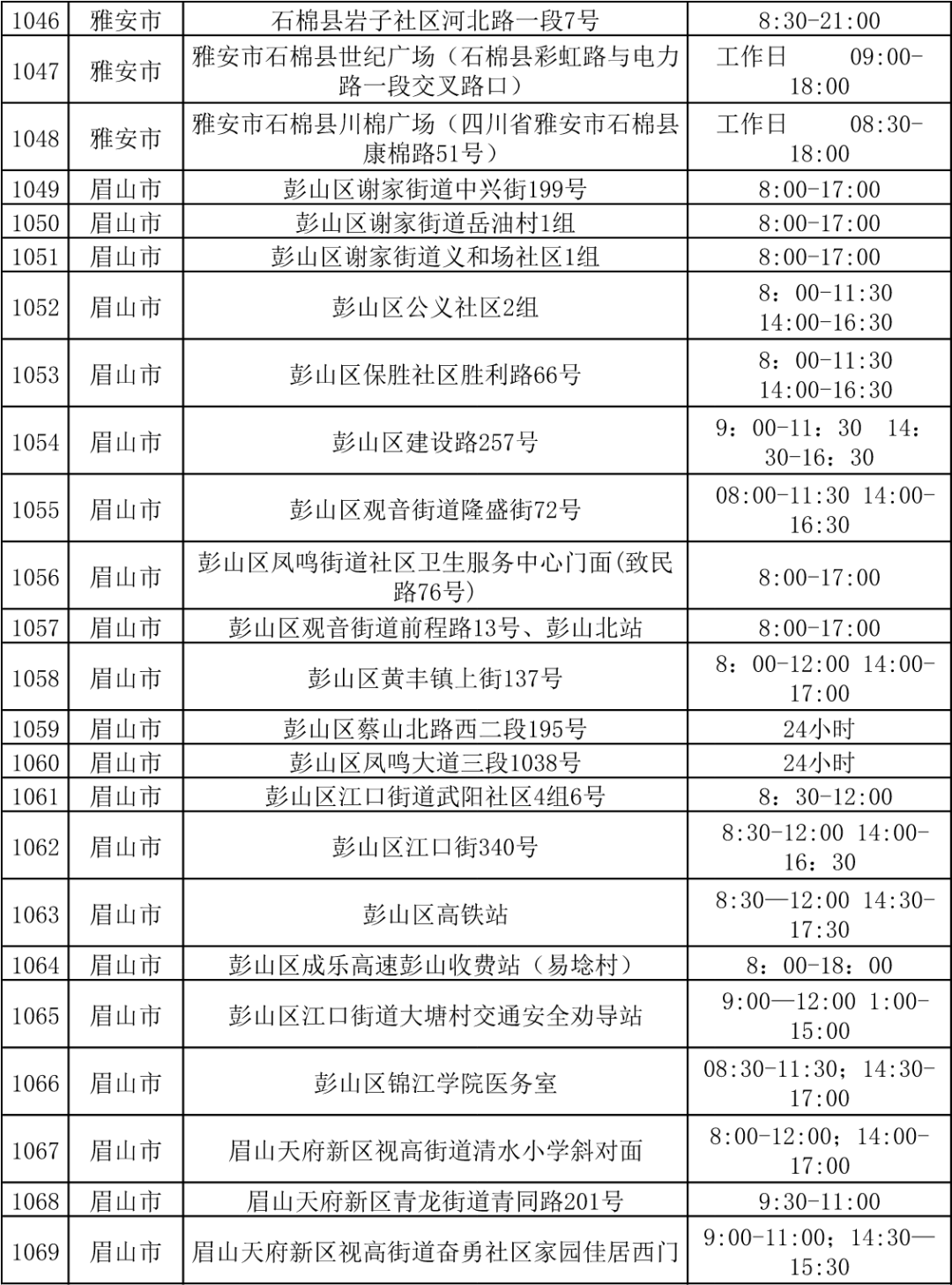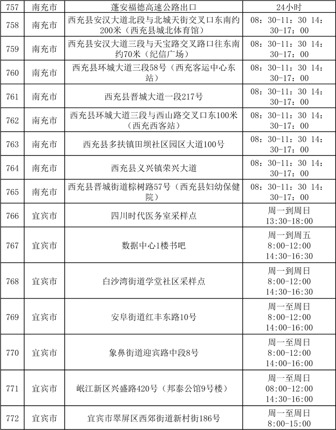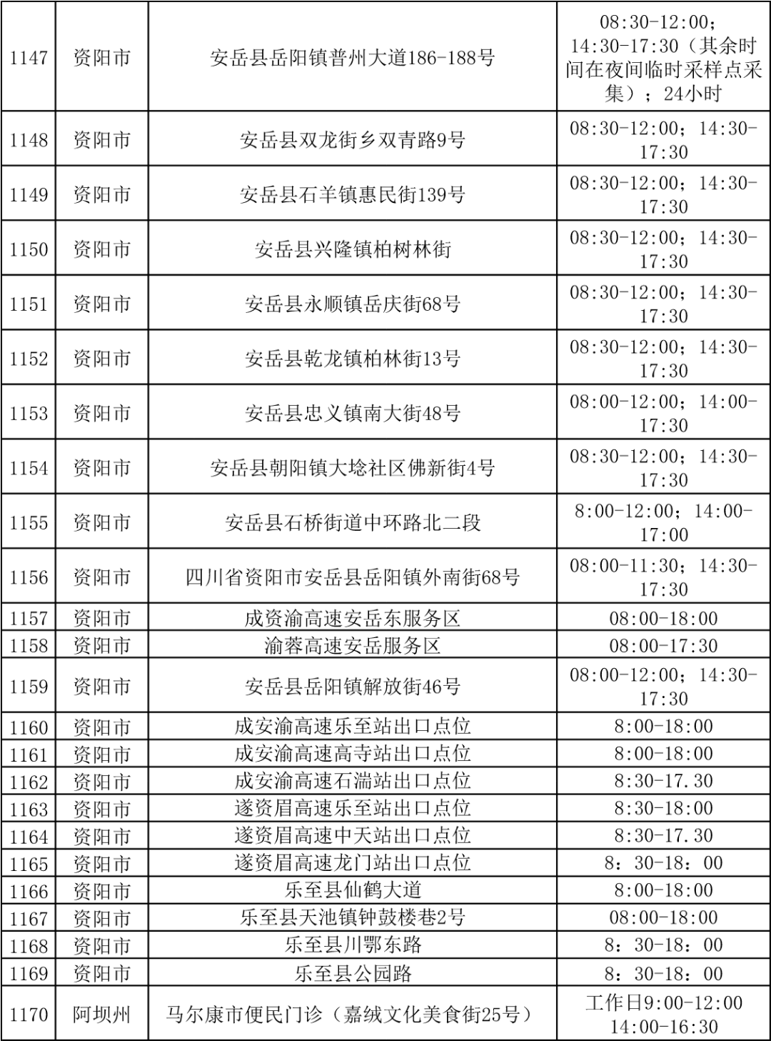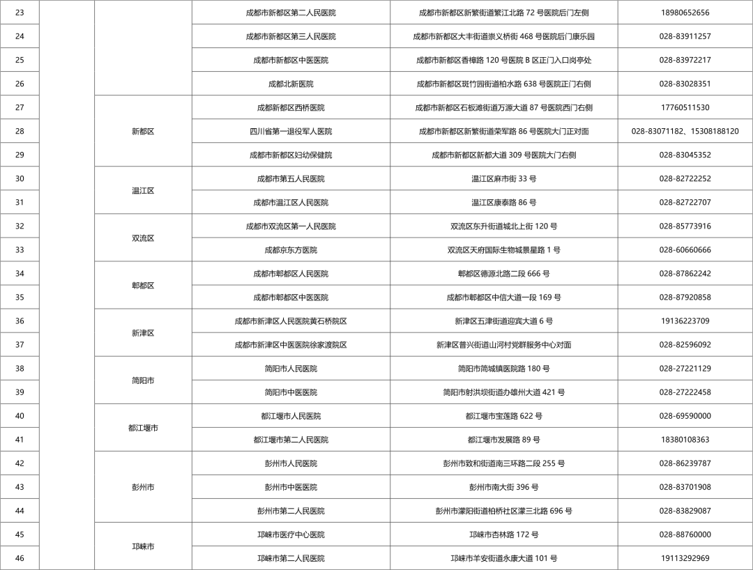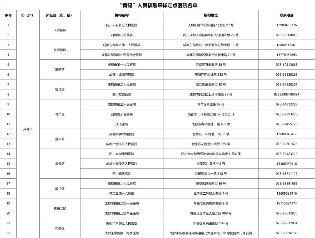 公众还可通过微信小程序“四川天府健康通”——热门服务——医疗防疫机构查询检测机构,或查看下方全省便民核酸采样点名单。