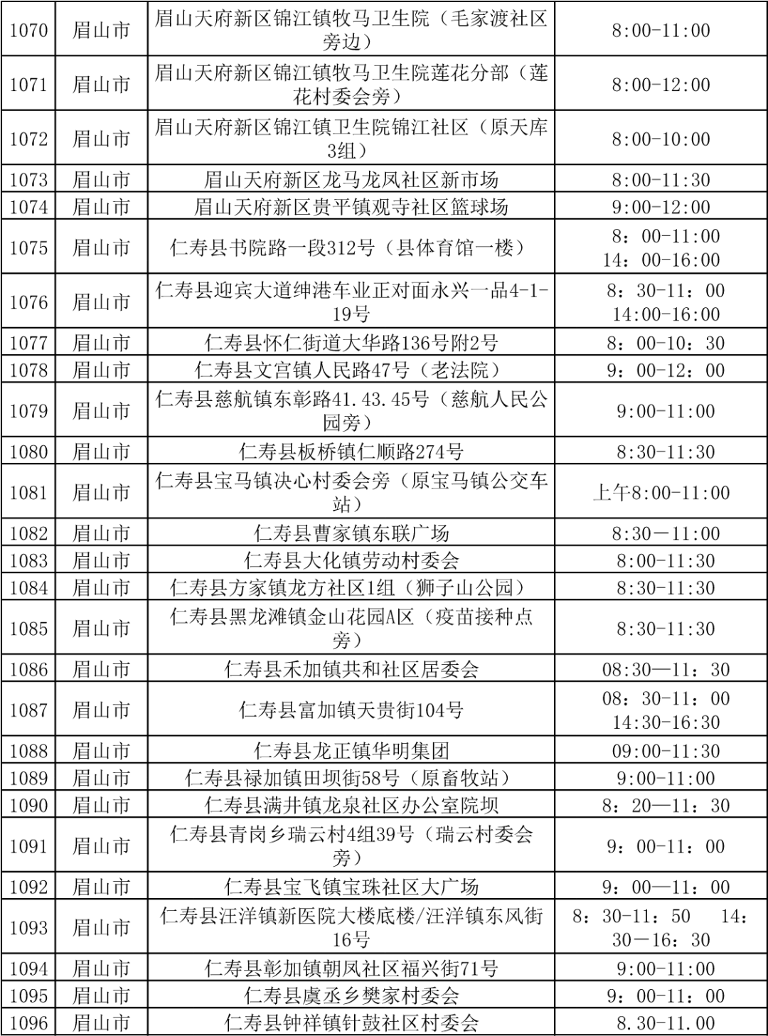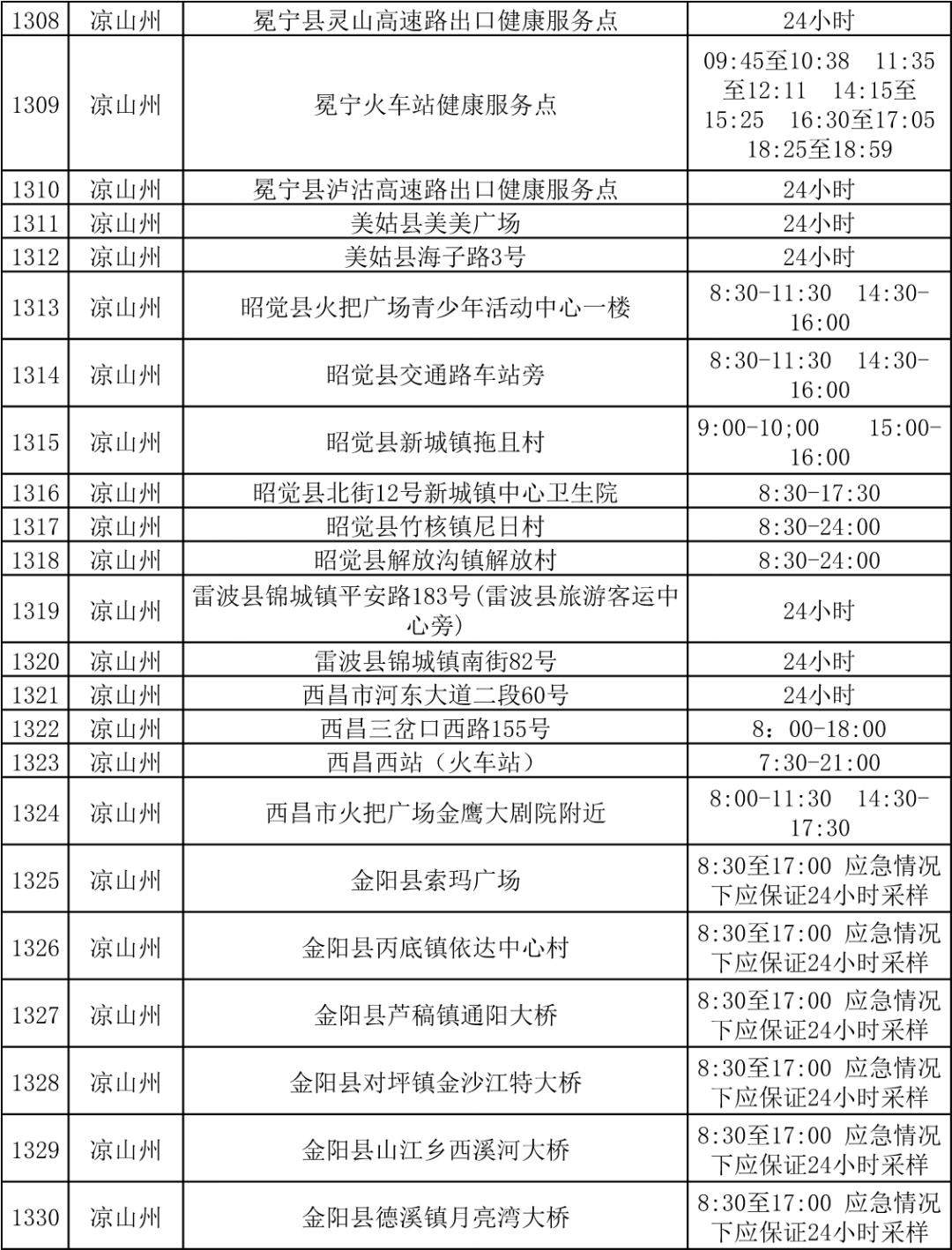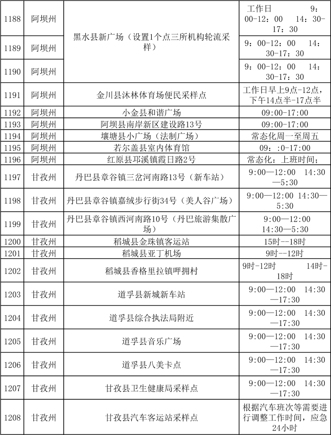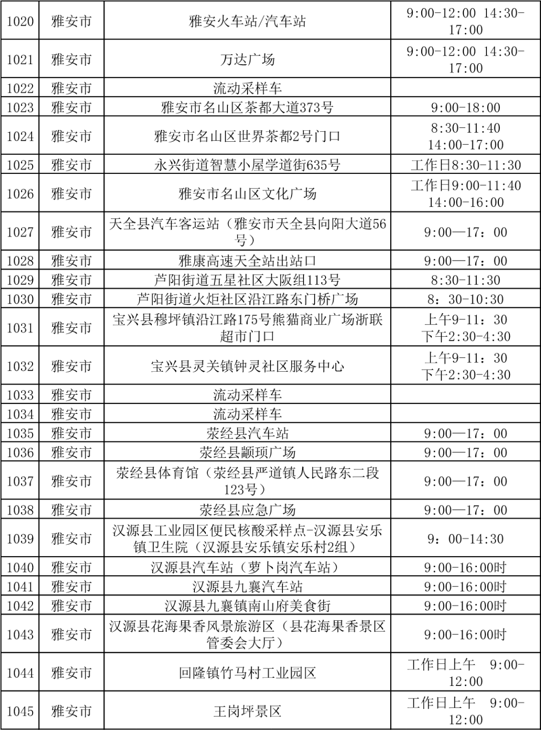 公众还可通过微信小程序“四川天府健康通”——热门服务——医疗防疫机构查询检测机构,或查看下方全省便民核酸采样点名单。