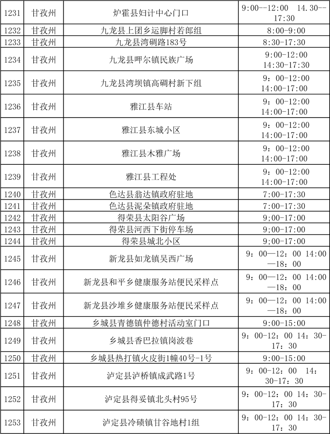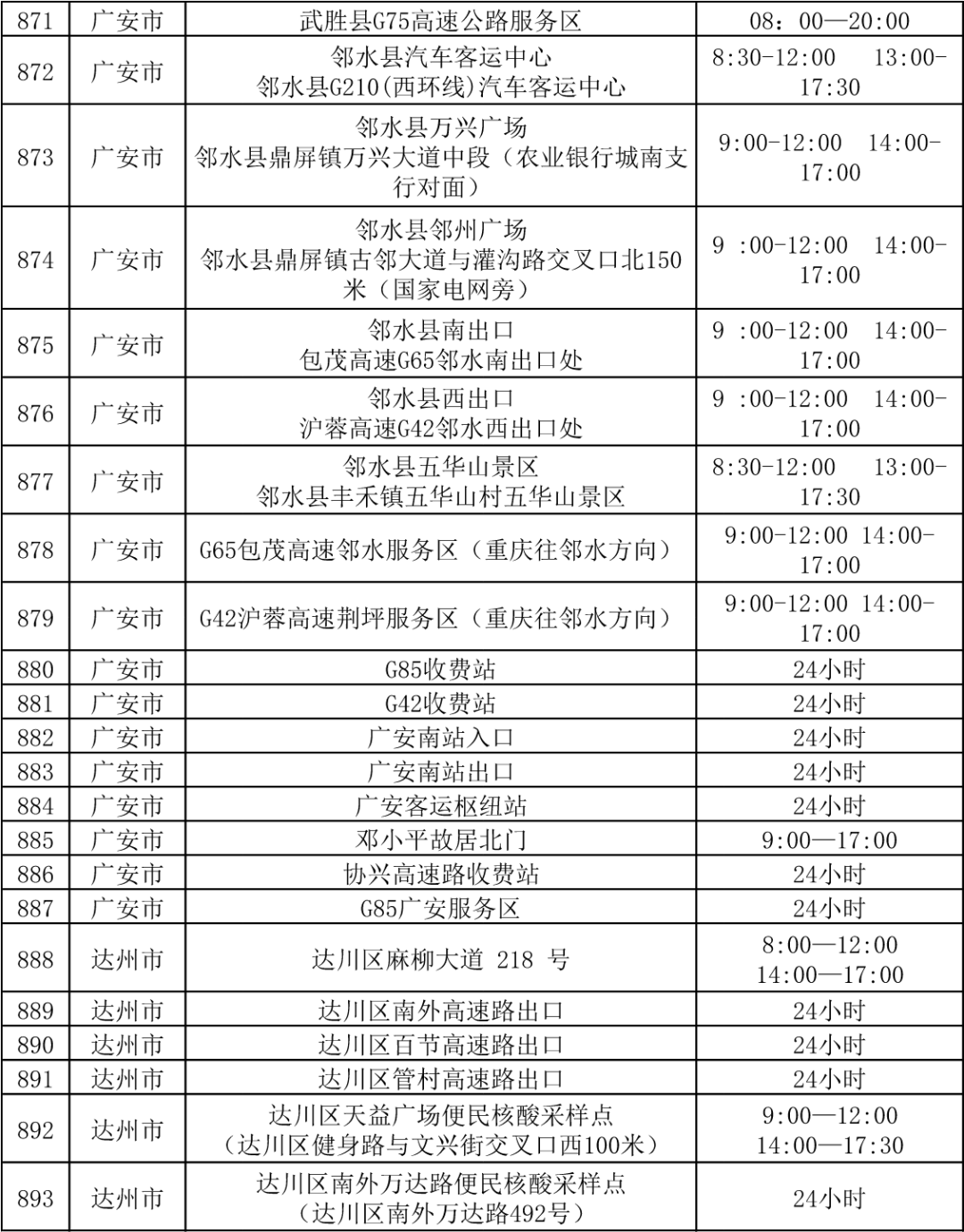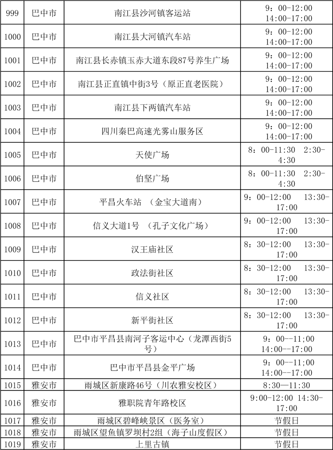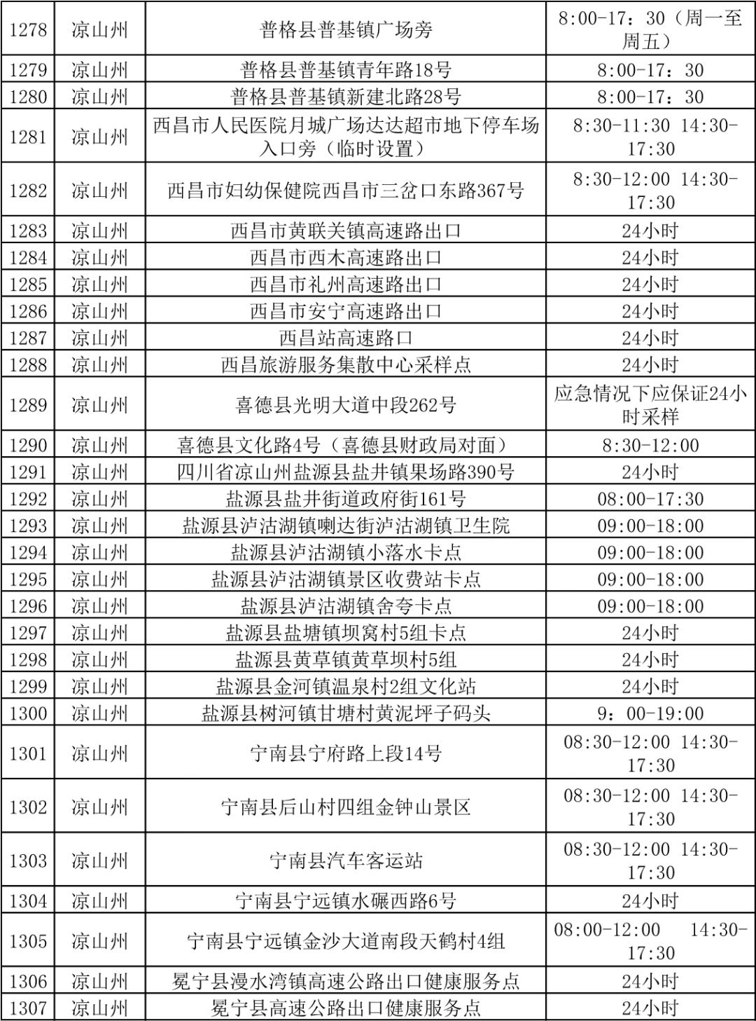 公众还可通过微信小程序“四川天府健康通”——热门服务——医疗防疫机构查询检测机构,或查看下方全省便民核酸采样点名单。