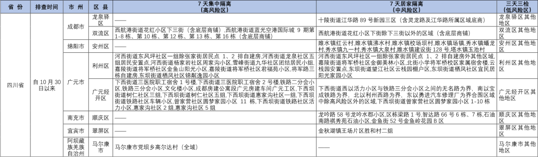 在继续落实对有中、高风险区旅居史人员管理措施的基础上,分以下层次开展风险人员的排查管控。(11月5日国内高、中、低风险区详情,请查看文末《四川省疫情防控重点地区提示表》)