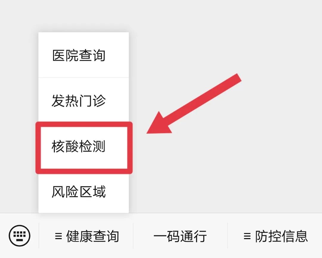 关注微信公众号“四川天府健康通官微”,点击左下方菜单栏“健康查询”,点击“核酸检测”进入即可。