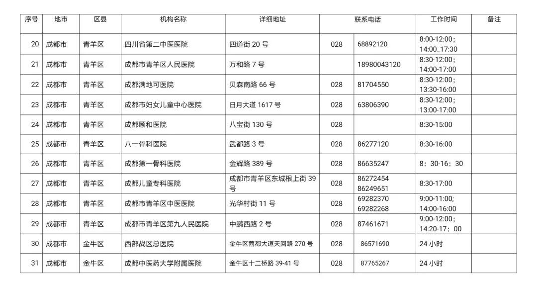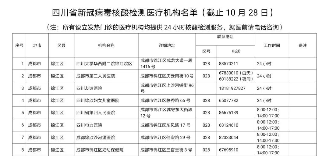 为方便群众及时就近进行新冠病毒核酸检测,小编整理了四川省新冠病毒核酸检测医疗机构名单,可收藏备用,转给身边需要的人!