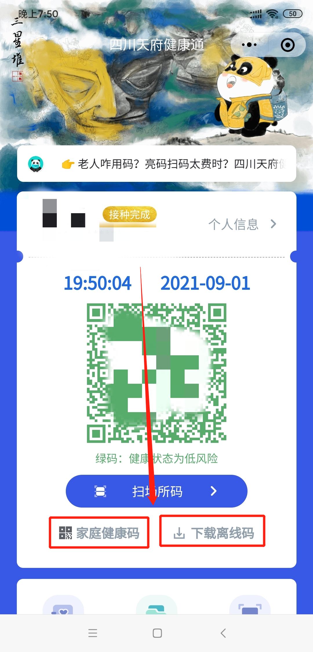 四川天府健康通提供离线码功能,离线健康码生成之后可下载并用纸打印出来,老人儿童可以随身携带,在7天有效期内使用。