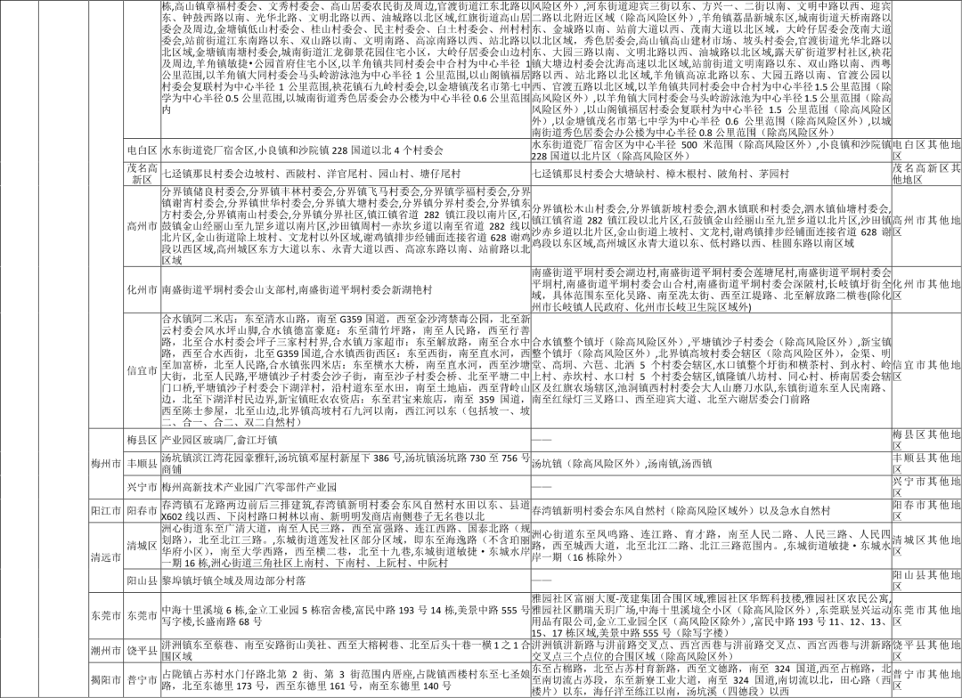 四川省疫情防控重点地区提示表