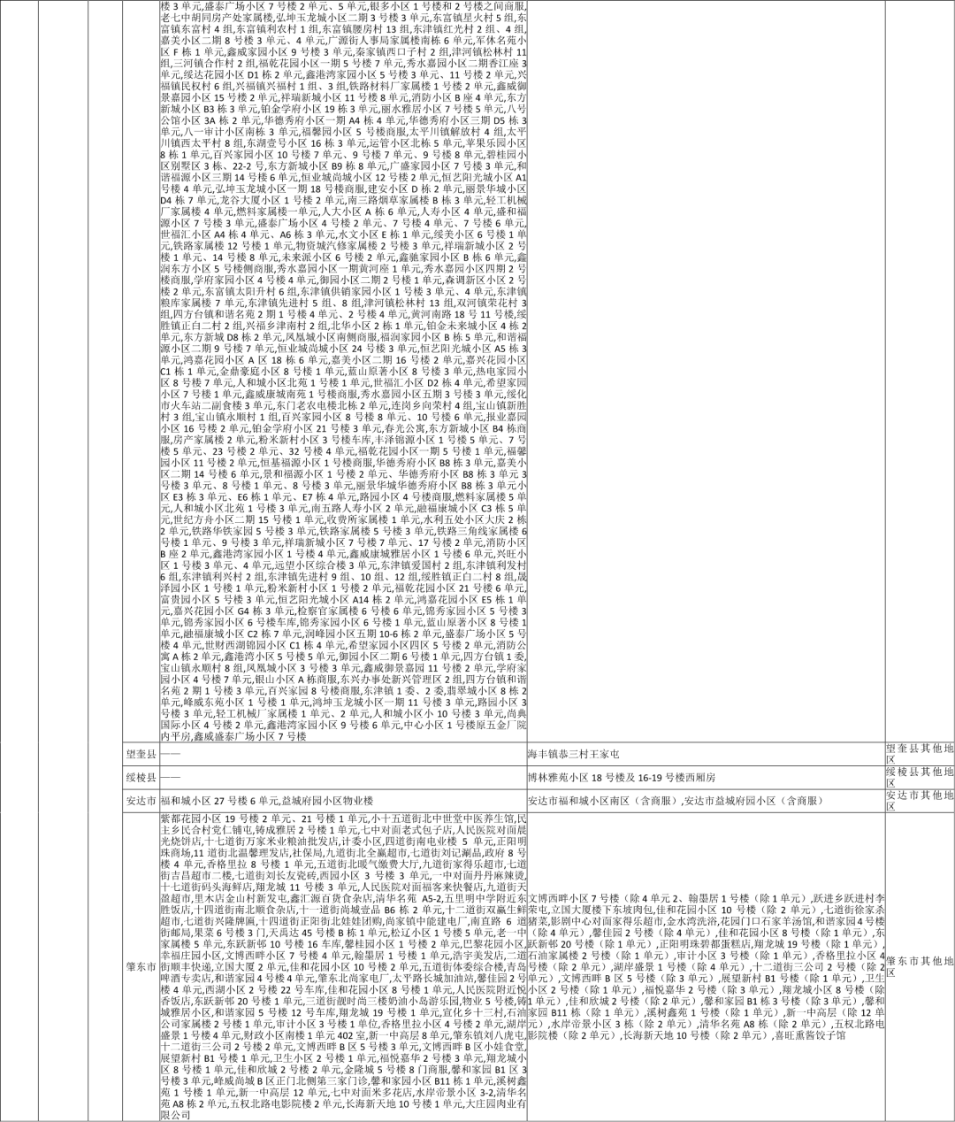 近期,国内疫情呈现“点多、面广、频发”的特点,防控形势更加严峻复杂。公众要密切关注青海省,甘肃省,宁夏回族自治区,内蒙古自治区呼和浩特市、乌兰察布市,广东省广州市、汕头市、茂名市,河南省郑州市,福建省福州市,黑龙江省哈尔滨市、绥化市,山东省青岛市、枣庄市,山西省大同市、忻州市,湖南省株洲市、邵阳市、怀化市,河北省石家庄市、张家口市、邢台市,辽宁省丹东市,云南省德宏州,天津市西青区,陕西省西安市,重庆市等地疫情动态。所有来(返)川人员,在入川前,要主动向目的地所在社区(村)报备,并积极配合落实相关疫情防控措施。