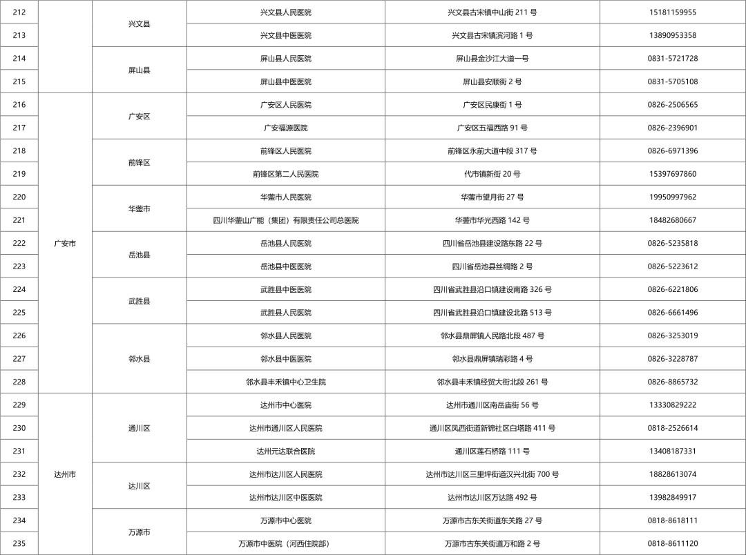 四川省各市(州)便民核酸采样点设置情况一览表
