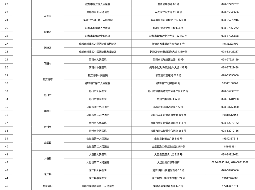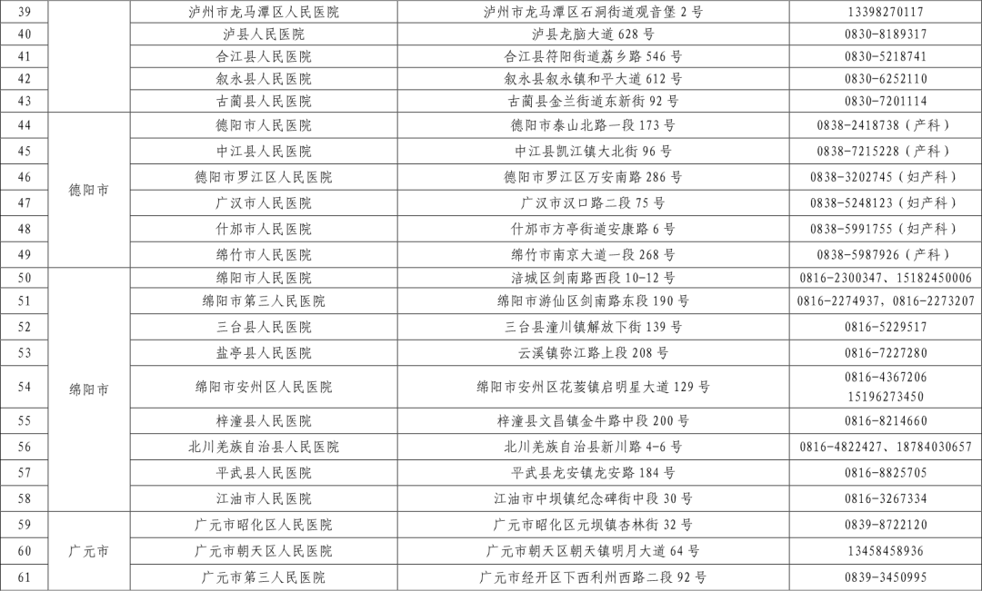 “黄码”孕产妇就诊定点医院名单